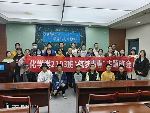2021年10月20日下午四点整,999策略白菜官方网站化学类2103班于化工楼B106会议室顺利举行第一次班级活动。本次班会以“筑梦青春:学业与人生规划”为主题,帮助同学了解“规划”在大学生活中的重要性,指导同学们制定自己的人生规划。此次班会邀请到了999策略白菜官方网站院长张晓兵教授,化学2103班班主任李滔老师及21级辅导员张子政老师。此次活动由活动委员赵启迪同学主持,化学类2103班全员参与。