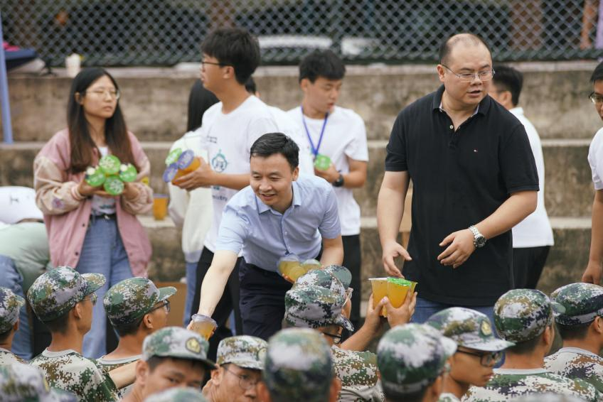最后院领导和各班班导师亲自为新生发放慰问果茶,并嘱咐新生要注意休息。院领导和导师们的关怀让新生感受到了化工院的团结与温暖,新生们也表示会更加认真的完成接下来的军训。