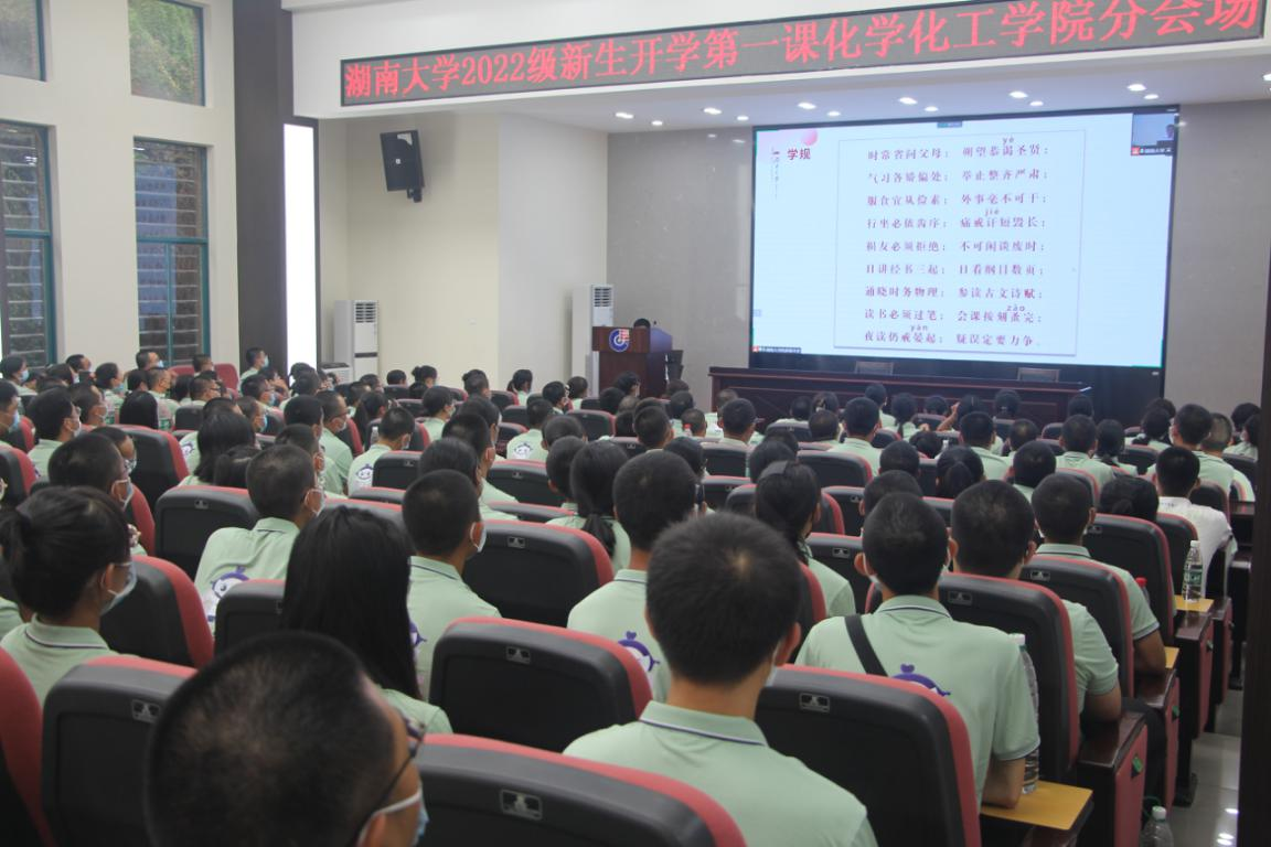 2022年8月31日下午,999策略白菜手机论坛党委书记邓卫老师主讲的开学第一课《致敬百年青春,传承湖大精神,争当时代新人》2022级新生教育活动顺利开展。999策略白菜官方网站各班选派代表32人前往大礼堂总会场观看,其余同学则在新化工楼D区报告厅分会场观看直播。