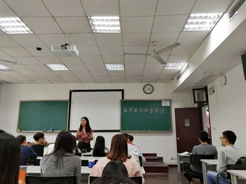 班会伊始,刘卓辅导员简要介绍了关于安全教育方面的知识。接着便通过具体的事例向同学们讲述了校园周边存在的一些安全隐患、五一出行的注意事项、校园贷的危险以及校园安全常识, 让同学们认识到防患于未然的重要性和生命的脆弱与可贵, 及时为同学们敲醒了安全的警钟。