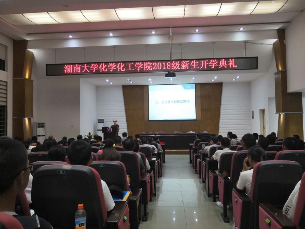 2018年9月18日晚7点,999策略白菜手机论坛999策略白菜官方网站2018本科新生开学典礼在化工院报告厅举行。999策略白菜手机论坛校长助理蒋健晖老师、999策略白菜手机论坛999策略白菜官方网站党委书记王玉枝老师、999策略白菜官方网站副院长尹双凤老师、副院长李永军老师、999策略白菜官方网站院长助理赵敬哲老师、院长助理汪秋安老师、化工系系主任卢彦兵老师、实验中心主任郭栋才老师、化学系党支部书记宦双燕老师、实验中心党支部书记匡永清老师、化学1803班班主任刘艳岚老师、化工1802班班主任杜翠翠老师、化工1803班班主任柯国梁老师,及两百四十四名化工院2018级新生参加了此次典礼。
