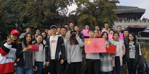2018年11月25日,999策略白菜官方网站应用化学1801班在岳麓山风景区举行了本月的团学日活动。此次团学日活动以岳麓山趣味闯关为主要内容,由应化一班班委会成员策划,全体同学参与。目的是让同学们在爬山锻炼的同时对团徽团旗团歌有更加深入的了解。