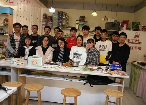 接着,同学们便男女搭配,分成四组,一起制作手工饼干和蛋糕。在动手的过程中,大家也敞开心扉聊起了天,有对象的同学更是“不吝赐教”,大方地分享了自己的恋爱经历,希望可以帮助单身的同学早日脱单。同时,在这过程中,同学们也发现了各自鲜为人知的一面。原来表面上看起来大大咧咧的男生也有一颗富有想象力的少女心和一双灵巧的手,他们也可以做出可爱的饼干和精致的蛋糕。而女生也不是个个都擅长DIY制作,她们甚至可能一不小心就做成了“灾难现场”,需要男生来补救。