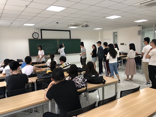 由于游戏内容需要,活动最初是在研究生院A208进行。第一个游戏是“真假难辨”,每组派出四个同学,喝四杯液体,其中一杯是浓盐水,其他三杯为正常饮料,通过表演,不让对方猜出谁喝了盐水。在一片欢声笑语中,同学们又进行了“心有灵犀”游戏。