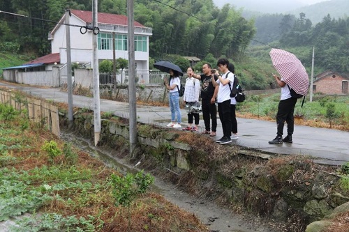2019年7月2日上午在白鹤洞村村干部的带领下,“木棉计划”团队的11人来到当地的中草药种植试验田进行参观调研。即使天下小雨,团队依然坚持来到基地进行调研。在当地干部的介绍下试验田主要分为两类:中草药种植基地和果树种植项目基地。