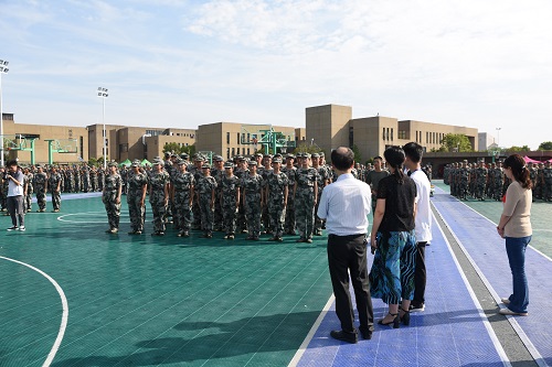 2019年8月30日,999策略白菜官方网站党委书记王玉枝,院长张晓兵和院党委副书记范媛吉到军训场地看望2019级军训新生。