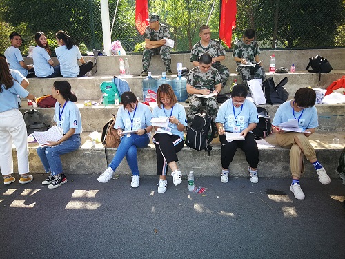 一天的训练中,又有几个新生出现身体不适的状况,而在旁边耐心等候着的班助则为新生们送上预先准备好的药物,并对新生们一一安抚。虽然艰苦乏累的军训生活让新生们身心俱疲,苦不堪言,但是班助们无时无刻的陪伴和无微不至的关怀,让他们疲惫的身心得到一丝慰藉。