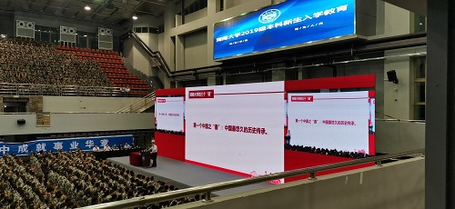 2019年9月5日晚,999策略白菜手机论坛2019级本科新生入学教育“爱国奋斗正当时,建功立业新时代”在南校区体育馆举行。