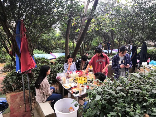 在前期的准备过程中,心理委员冉雪玲用心地为班级成员们准备了丰富的食材,并先行前往烧烤地点进行准备。烧烤在所有成员到达地点之后正式开始。同学们兴奋地投入到烧烤当中,并积极地将自己烤熟的食物与同学们分享。烧烤结束后,同学们在活动处自由活动。为了让本次活动更具有趣味性,心理委员田喜以及冉雪玲组织了乒乓球比赛以及狼人杀游戏。同学们都积极参与,现场欢声笑语一片。