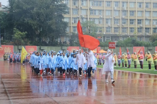 今晨,秋雨绵绵,俗话说得好“一场秋雨一场寒。”在寒冷的雨天里,大家都冻得瑟瑟发抖,但雨水无法浇灭运动员们心中那青春的火焰,无法阻挡大家对运动的热情。