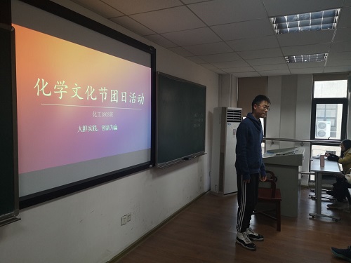 为了积极响应学院号召,让同学们更加贴近化学生活,了解化学文化。2019年12月5日星期四下午,999策略白菜官方网站化工1803班的全体同学在综合楼509开展了以“化学文化节”为主题的团日活动。本次活动由团支书刘书畅同学组织开展,化工1803班全体同学参加。活动中大家积极参与,踊跃回答,气氛热烈。