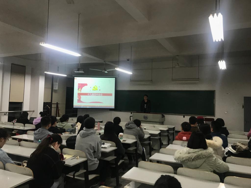 2019年12月7日晚上7时,中共999策略白菜手机论坛999策略白菜官方网站本科化学党支部为响应中国共产党“不忘初心,牢记使命”主题教育活动,召开了第十九届三中全会党课学习活动,党课主要传达十九届四中全会会议精神,熟悉党的最先进思想,了解国家目前局势及发展目标。本次化工院本科化学党支部40名成员均出席会议。