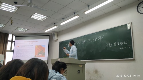 为深入学习贯彻习近平新时代中国特色社会主义思想,推动全党更加自觉地为实现新时代党的历史使命不懈奋斗。20191223日下午,化工1702班全体同学在班长和团支书的带领下在复临舍504开展了以"不忘初心,牢记使命"为主题的团日活动。 本次团日活动邀请到了化工1701班和化工1703班的几名党支部的主要成员,为同学们开展此次主题教育活动。支部代表们结合刚召开不久的十九届四中全会,以及当前国际国内形势,个人对党建和国家制度的理解与看法,深刻阐释了中国特色社会主义制度和国家治理体系的显著优势,从理论与实践、历史与现实,多角度、多方面对党的十九届四中全会精神作了全面准确、深入系统的宣讲和阐释。