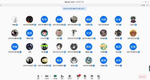 2020年初,新型冠状肺炎病毒在国内疯狂转播,导致高校延迟开学。为了了解同学们在疫情中的状态、稳定同学们不安的情绪,化学1801班于313日晚7时通过腾讯会议开展了以“共抗疫情,爱国共行”为主题的班会。