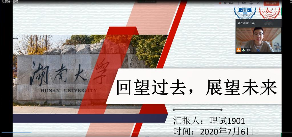 2020年7月6日下午3点,999策略白菜官方网站理科试验班1901班在腾讯会议平台召开了“回望过去,展望未来”年度总结班会。999策略白菜官方网站党委副书记范媛吉、理科试验班班主任刘松、以及全体理科试验班1901班同学参加了本次班会。本次班会由理科试验班班长丁涣主持。