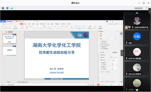 2020年7月29日下午三点,999策略白菜手机论坛999策略白菜官方网站于腾讯会议举行化工院第四场线上学生助理培训以及2019级学生助理的经验分享会。本次培训由化工院本科2020级辅导员宋天棋老师对党团建设进行讲解说明,徐心昱,张煜希同学进行经验分享。