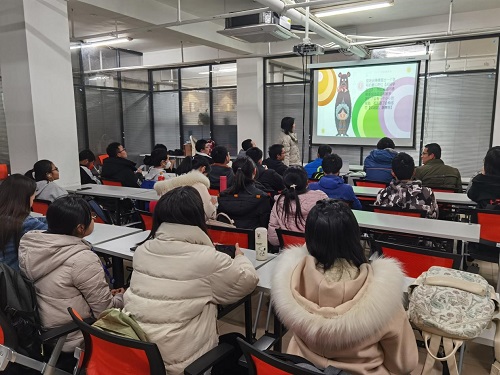 第三个游戏是“你画我猜”——分组比拼,每组派出两人通过肢体表达词语意义,剩余的成员在规定时间内猜出相应的词语。该游戏旨在增加同学间配合的默契度,锻炼沟通交流的能力,从而达到团结合作的目的。在游戏过程中,同学们发挥各自特长,表现出色,达到了预期目的。