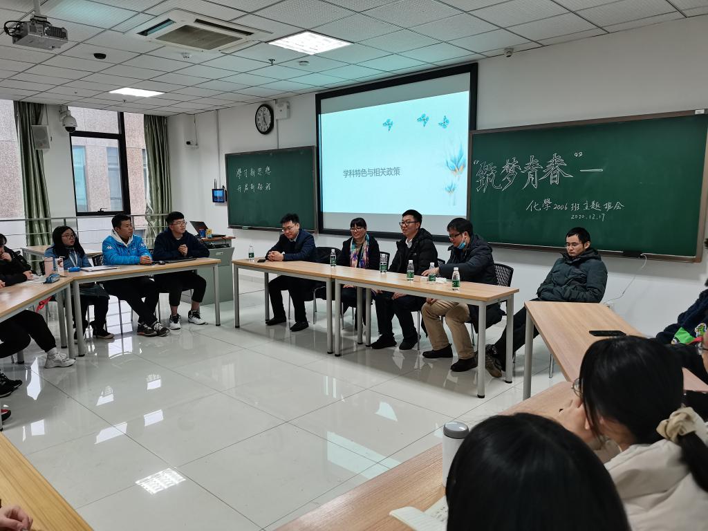 为了积极响应学校号召,加强对学生的思想、价值观念引导及行为、学习习惯养成,帮助学生更好地适应大学学习生活,规划今后的发展方向,2020年12月20日下午4点,999策略白菜官方网站化学类2006班于研究生院楼顺利开展“筑梦青春”主题班会。朱日龙、楚宗霖、张小华、李铮、霍甲五位老师出席此次班会,与学生进行亲切友好的讨论与交流。