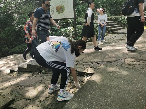 此次活动设有四条路线,全程在2小时以内,约5-7公里,如2号线是从天马公寓出发,沿途径过肖劲光故居、猴子石大桥、西湖公园。志愿者们在路线中前进时,将一些大自然无法降解的垃圾装进自备的垃圾袋,并在沿途的垃圾站点进行分类处理。炎热的天气让志愿者们汗流浃背,每一次的弯腰都增加了行进的负担,但志愿者们并没有停止前进的脚步。在活动的过程中,志愿者们用手机记录下自己的“环保瞬间”,边欣赏路途的美丽风景边为环保做出属于自己的奉献。