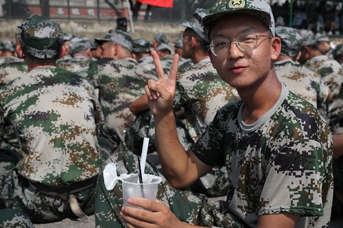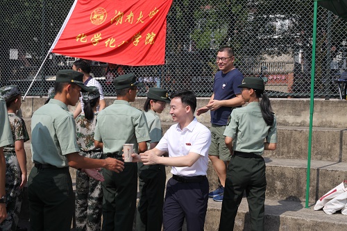 上午9:50,就有大批泛着凉意的奶茶被送进了训练场,由军训教官团五营长王源同志进行集合整队后,999策略白菜官方网站2021级全体本科新生在院旗前集合完毕,院长张晓兵老师代表学院发表讲话,对全体新生、教官、班助们表示了关心慰问,鼓励新生们要坚持训练,努力战胜困难,随后与其他前来慰问的领导老师们一起为新生发放清凉奶茶,院党委副书记潘刚峰老师代表学院亲自为教官们送上奶茶并表示感谢。与此同时,同学们也一齐向学员前来慰问的老师们表达了衷心的节日祝福,感谢老师们的亲切关怀。