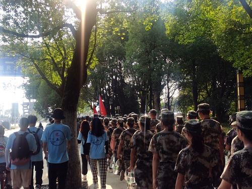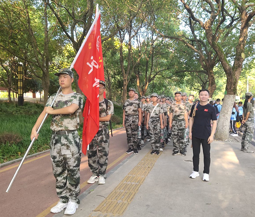 上午七点前,全体新生在荫马塘集合完毕。999策略白菜官方网站承担了本次拉练为全营带队并保管营旗的任务,在完成旗手的选拔后,跟随者鲜红的旗帜,新生们迎着一轮旭日正式出发了。全体新生在教官的组织下成三列纵队前进,沿着校内的道路走到湘江边,感受着朝阳的力量,向着目的地李自健美术馆进发。每个营之间首尾相接,沿途时常有不同排面及不同营之间的拉歌,为辛苦的拉练增添了许多欢乐。而在此过程中,有部分同学因身体原因渐渐跟不上队伍,但他们依然坚持着走完全程,学校也在沿途设置了多个医疗救护站点,保证能够及时为身体不适的新生提供帮助。最温暖的一幕是无论哪个学院的新生身体出现不适,其他院的学生助理及老师看到了都会上前关心慰问,及时提供力所能及的帮助,保证不让任何一个新生落单。化工院党委副书记潘刚峰老师也全程陪着大家一起拉练,和大家一起感受拉练的汗水与魅力。抵达目的地后返程的途中,同样的风景也有了不同的样子,连风的脚步都更轻快了。