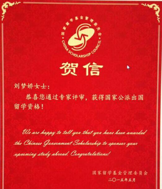 恭贺Beat3652011级毕业生、畜牧兽医专业本科自考毕业生、四川农大硕士刘梦娇同学被“2015年国家建设高水平大学公派研究生项目”录取为德国亚琛工业大学纳米医学专业博士研究生!