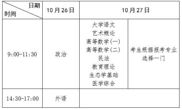 (2)专升本考试时间表