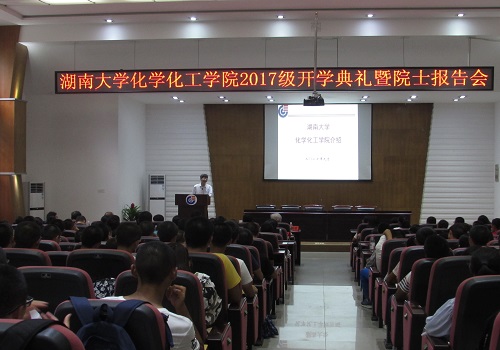 2017年9月19日下午两点半,999策略白菜官方网站2017级本科生开学典礼在院报告厅成功召开。中国科学院院士俞汝勤、学院党委书记王玉枝教授、院长蒋健晖教授、党委副书记陈义红老师、副院长尹双凤教授、聂舟教授、李永军教授、崔坤在老师,化学系党支部书记宦双燕教授、化工系系主任卢彦兵教授、实验中心主任、化工1703班班主任郭栋才教授等17级全体班主任和学工办全体老师,17级新生辅导员曾芷兰老师主持此次典礼。