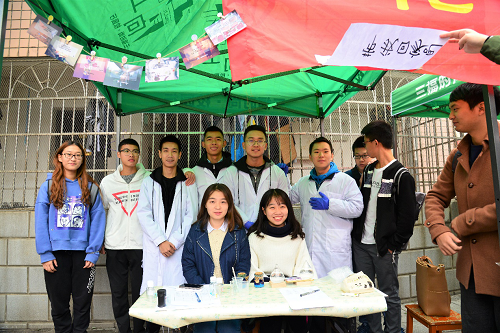 第三届化学文化节于25日召开开幕式,趣味化学展区在天马篮球场处设立。由院青协负责的天气瓶制作活动在开始不久便得到了同学们的支持。青协对于活动提前做好了分工工作,其干事分别负责材料购买、现场宣传、过程讲解、天气瓶制作以及报名统计等相关工作。原本准备的一张报名表在文化节开幕不久便已填满,同学们对于该活动的热情可见一斑。志愿者现场制作天气瓶吸引不少同学驻足,细心的讲解也让上前观看的同学对于天气瓶原理有了些许了解。在一次次的现场制作过程中,天气瓶的完成度也是越来越高,这也让更多的学生想要加入其中参与制作。在最后一次的现场制作中,志愿者邀请了在场学生进行合作制作天气瓶,其成果也可称之为完美。除此之外,部分干事负责小学科普展的招募工作,现场同学积极参加,招募工作也得到了顺利完成。