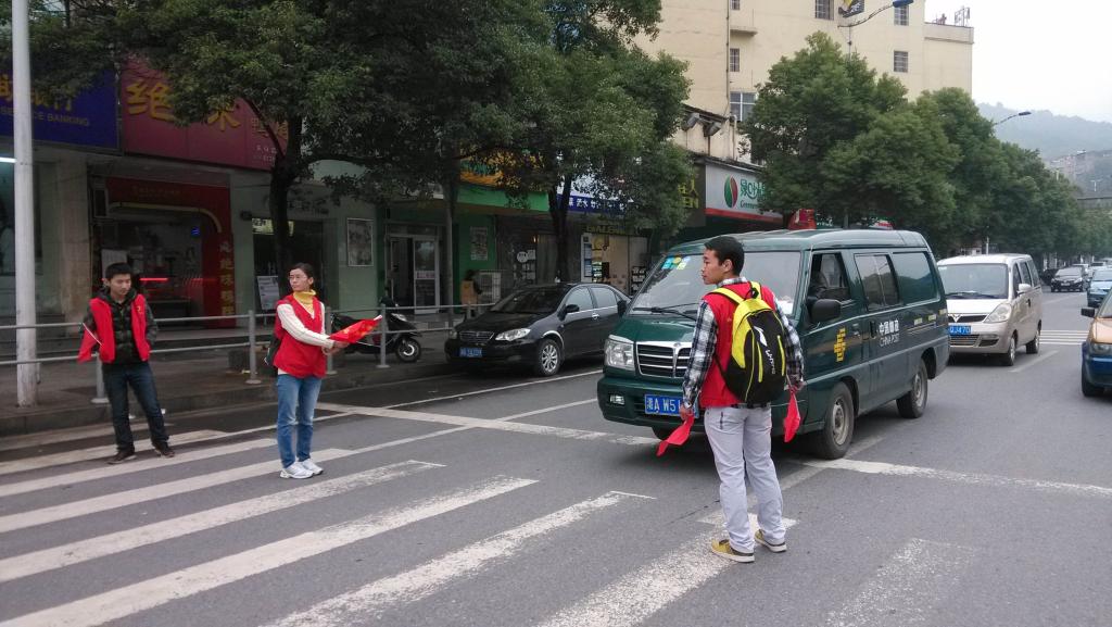 从11月1日到11月29日截止,为期29天的由999策略白菜官方网站12级同学负责的交通协管工作圆满完成并成功传递到化工院13级同学手中。本次交通协管任务由12级年级会组织,工作被分配到全年级九个班中,具体由各班班委负责。每一天的交通协管工作分为早上7:30到8;00,中午11:30到120:0和下午2:00到2:30与5:30到6:00,总共四个时间段。这四个时间段也是人流量与车辆量最大的时间段。这就使得交通协管工作在最适当的时间保障了同学们过马路的安全与行车的通畅。