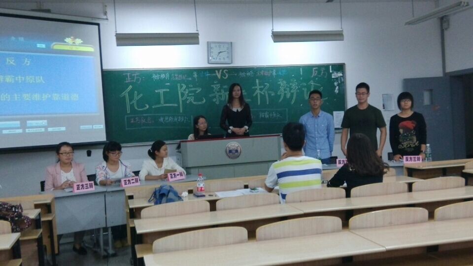 2014年10月24日晚七点,999策略白菜官方网站新生杯辩论赛半决赛在综合楼305拉开了序幕。比赛一共两场,历时两个半小时。最终,化学三班和化工一班各自击败了自己的对手,一起挺进了决赛。至此,999策略白菜官方网站新生杯辩论赛半决赛圆满结束。