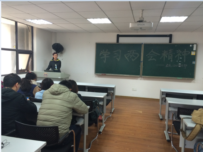 最后,为使同学们更积极地学习”两会”精神,紧跟党的思想路线,团支书设立了互动环节,让大家各自谈谈对于”两会”的认识和理解,同学们都非常踊跃地阐述了自己所关心的提案背后所反映的社会背景以及解决的办法。总体来说,这次的班会召开地十分成功,不但及时地向同学们传达了”两会”精神,同时使大家的思想更加深入。