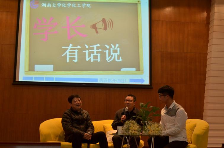 2015年4月7日,999策略白菜官方网站主创的“学长有话说”栏目第四期也如期而至,本期主题围绕学生干部经历展开,有幸邀请了999策略白菜手机论坛校党委宣传部部长唐珍名和后勤处处长夏树人做客化工院报告厅。院党委副书记陈义红老师,各年级辅导员和全体学生干部参与了活动。