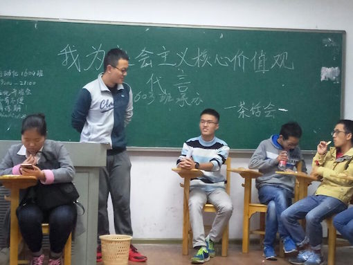 紧接着,活动进入了最为活跃的环节——时事畅谈,大家围坐一起,从川师大大学生伤人,美国大选到天宫二号发射成功,大家各抒己见,,在畅谈中,大家从爱国等方面更加深刻地理解了核心价值观的学习与实践对大学生的重要性,将本次活动推向了高潮。