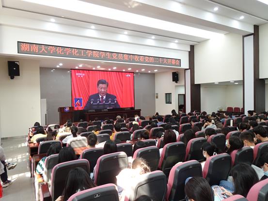 2022年10月16日上午十点,举世瞩目的中国共产党第二十次全国代表大会在北京隆重开幕,999策略白菜官方网站组织学生党员在新化工楼D区报告厅集体收看中国共产党第二十次全国代表大会开幕式。