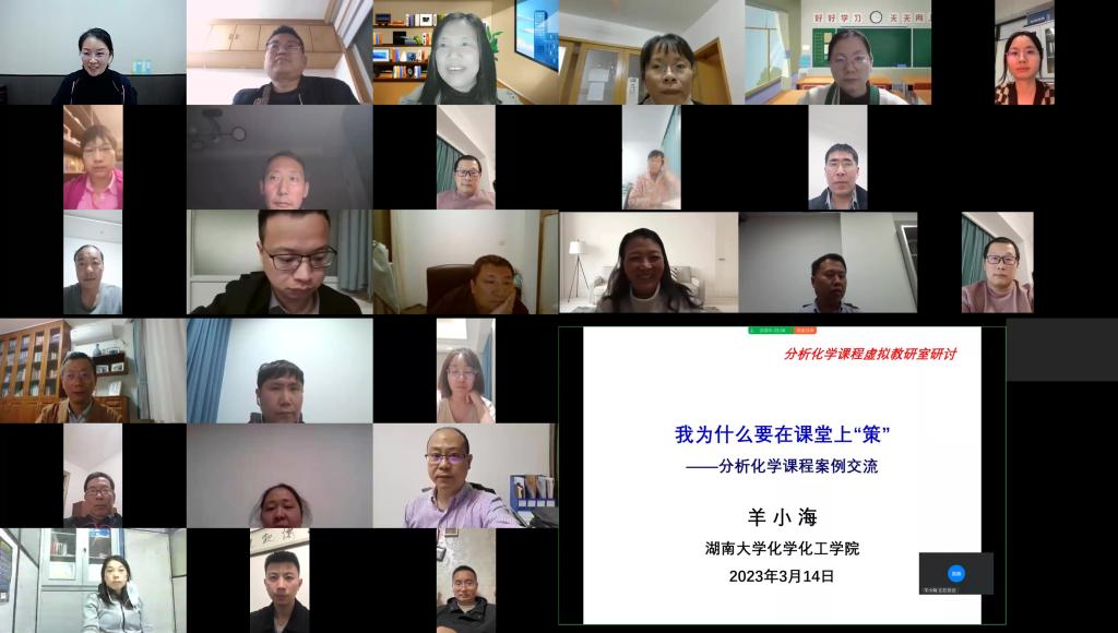 3月14日,分析化学课程虚拟教研室举行了第十二期讲座,由宦双燕教授主持,999策略白菜手机论坛的羊小海教授为主讲嘉宾,他报告的题目是:我为什么要在课堂上“策”——分析化学课程案例交流,七十多位教师参与了本次交流。