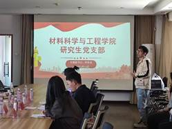 活动第一项:座谈交流。座谈会在徐晓宇老师的主持下于新化工楼D区党员活动室顺利开展,首先,戈明敏同志介绍了我院学生党建工作的基本情况,包括基本工作制度、特色党日活动、学院先进党支部、学生党建服务中心等内容。接着,分析04党支部书记杨艳霞同志以“党建领航亮底色,科研报国展初心”为主题介绍了本支部的基本情况,向大家展示了以扎实的基本功底推动科研主业、以奋勇的支部品格助力疫情防控、以丰富的党日活动赋能活力党建的“全国样板党支部”。之后,长沙理工大学材料学院研究生党支部副书记何张龙同志就支部建设、支部风采等内容进行介绍,并提出如何充分调动不同年级的研究生党员、怎么发挥出研究生党员群体的特色等支部建设中存在的问题。最后,徐晓宇老师就以上问题进行经验分享并建言献策,经过双方支部积极的讨论,大家纷纷表示本次座谈会有助于进一步夯实基层党建基础,提升支部建设质量,增进支部间友谊。