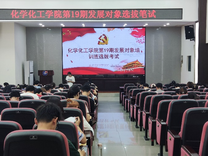 为深入贯彻《中国共产党章程》和《中国共产党发展党员工作细则》,加强对学生党员发展对象的培养教育,考察其政治觉悟、思想品质、党性修养是否符合党员标准,严把发展对象“入口关”“质量关”“程序关”和“责任关”,我院于2023年9月19日中午12点半在新化工楼D区报告厅组织开展了第19期发展对象培训班选拔笔试,101位本硕博学生参加了此次发展对象选拔笔试。