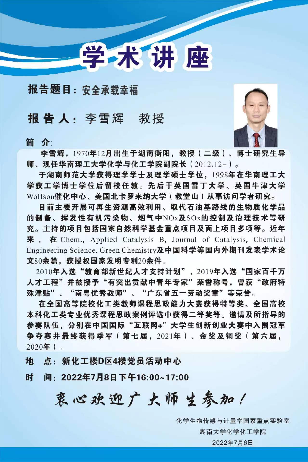 2022年7月8日华南理工大学李雪辉教授学术报告会