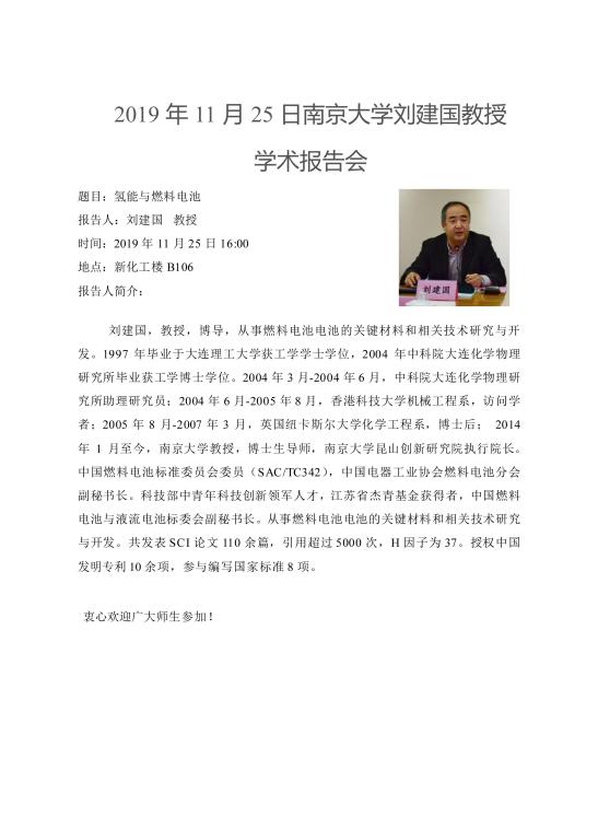 2019年11月25日南京大学刘建国教授学术报告会