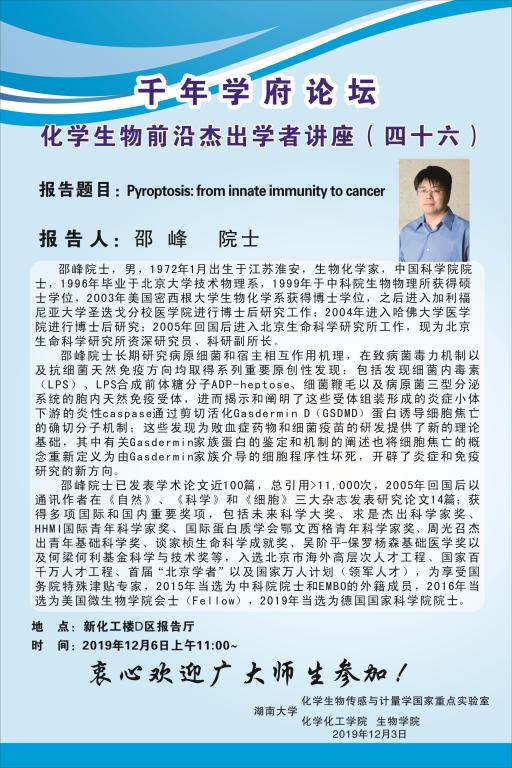 2019年12月6日北京生命科学研究所邵峰院士学术报告会