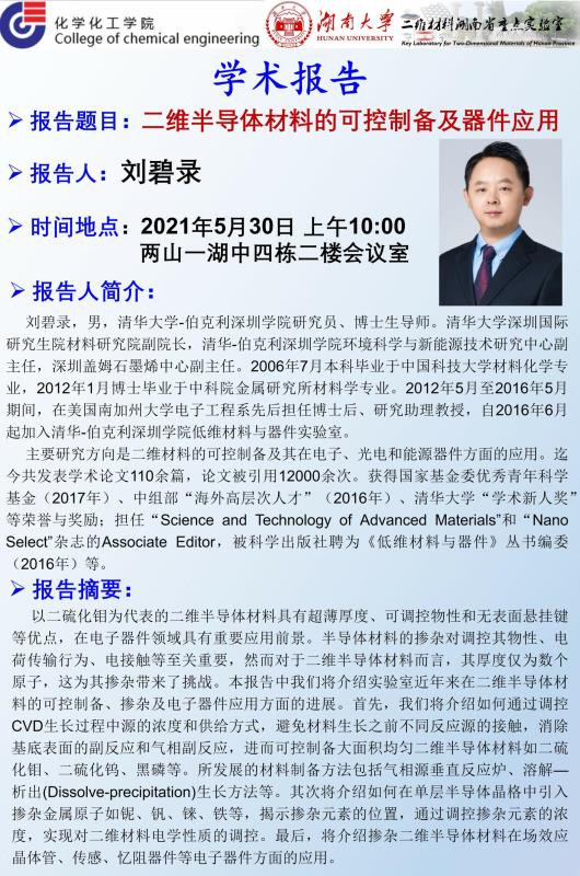 2021年5月30日清华大学刘碧录研究员学术报告会