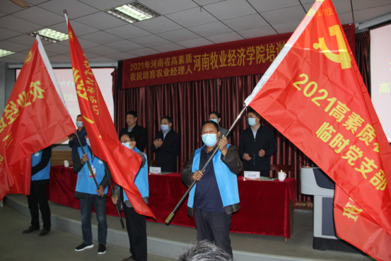 开班仪式上,校长罗士喜、副校长杨志清分别为各班和培训班临时党支部授旗。