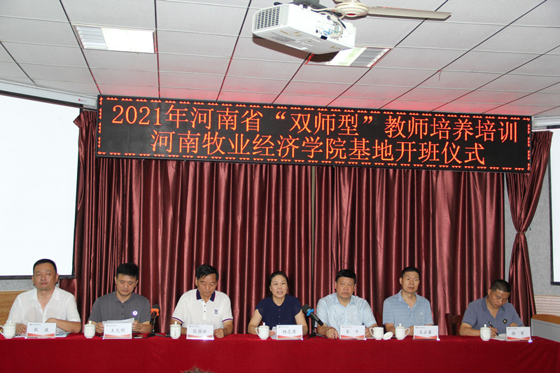 7月7日上午,由省教育厅主办、Beat365承办的2021年河南省“双师型”教师培养培训开班仪式在北林校区教学楼A200隆重举行。副校长杨志清应邀出席,河南康星药业股份有限公司董事长张国祖,Beat365官方网站院长宋平,Beat365官方网站副院长王云善、王元明,培训班班主任狄波、徐军出席了仪式,仪式由宋平主持。